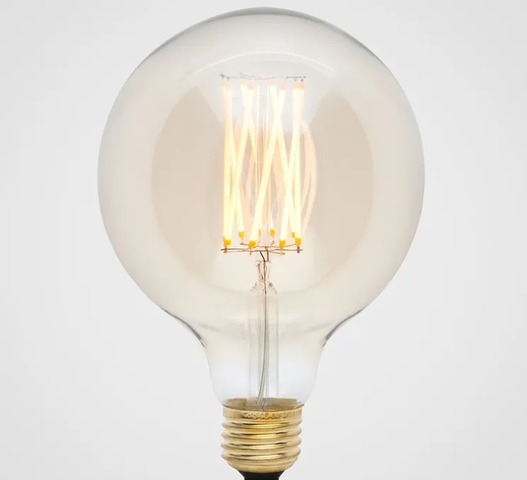 L’ampoule Gaia Tinted de Tala est une petite source de lumière LED avec un culot E27, idéale pour être associée à différents luminaires. Cette source lumineuse teintée possède un design rétro avec des filaments apparents, il émet une teinte ambrée chaude tout en nécessitant très peu d’énergie.