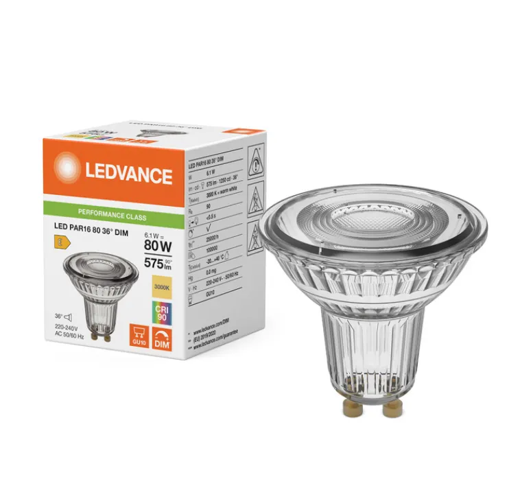 Cette ampoule LED PAR16 de la marque Ledvance est équipée d’un culot GU10 et est dimmable, offrant ainsi un contrôle total sur l’intensité lumineuse selon vos besoins.