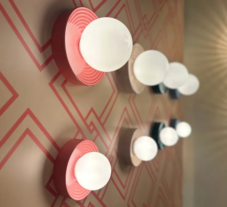 Signée par le Studio Elements Lighting, l’applique murale Alicia Petite en céramique émaillée et verre opale incarne l’approche distinctive de la marque française Elements Lighting.