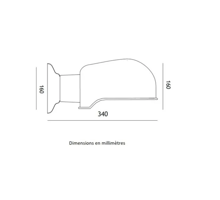 L’applique mesure 16 cm de hauteur et 34 cm de longueur. La base, quant à elle, mesure 16cm de diamètre.