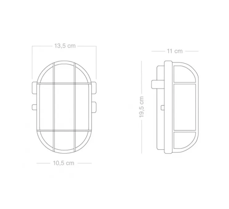 L’applique mesure 19,5cm de hauteur, 11cm de profondeur et 13,5cm de longueur. L’ampoule Led E27 d’une puissance maximale de 6W n’est pas fournie mais est recommandée pour le bon fonctionnement du luminaire. Entraxe : 12cm.