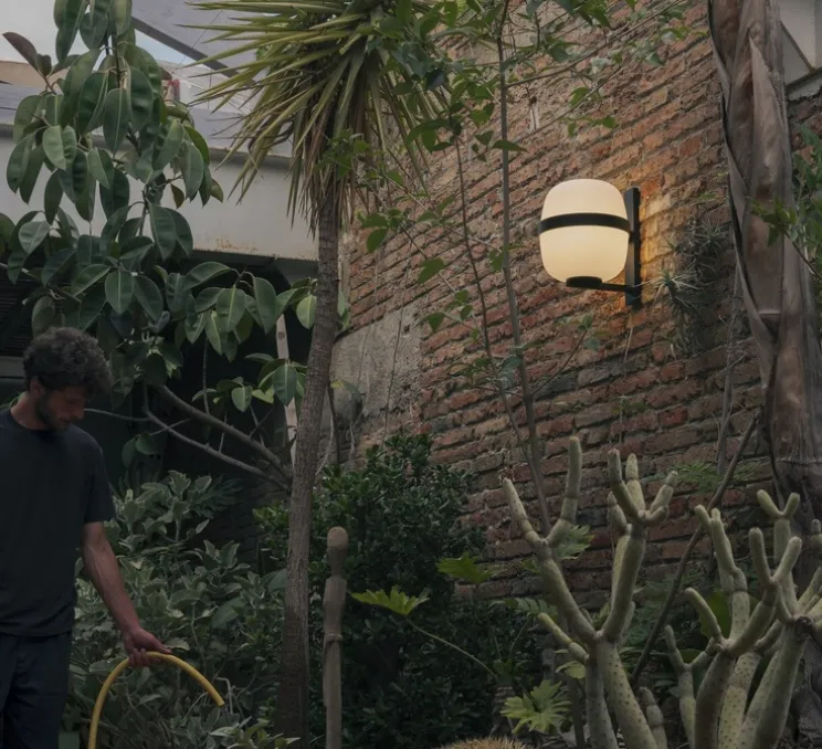 Voici l’iconique modèle Cesta déclinée en version applique d’extérieur avec Wally Cesta.