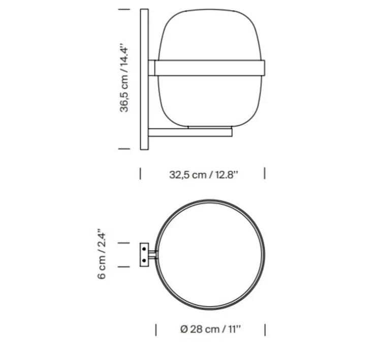 La lampe mesure 33cm de diamètre et 36,5cm de hauteur.
