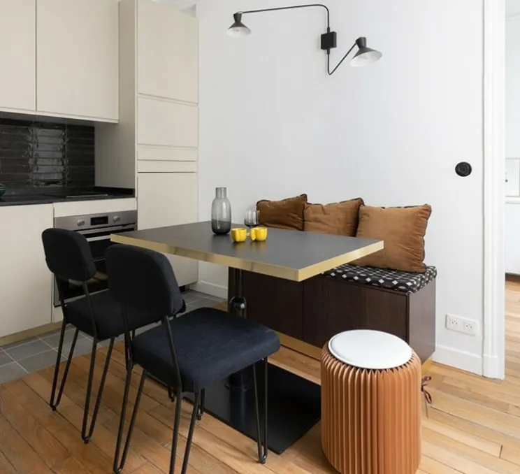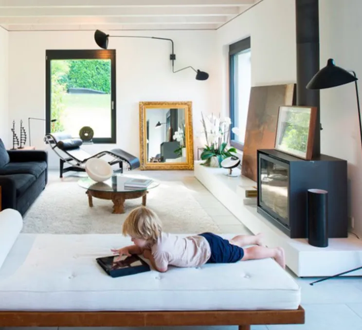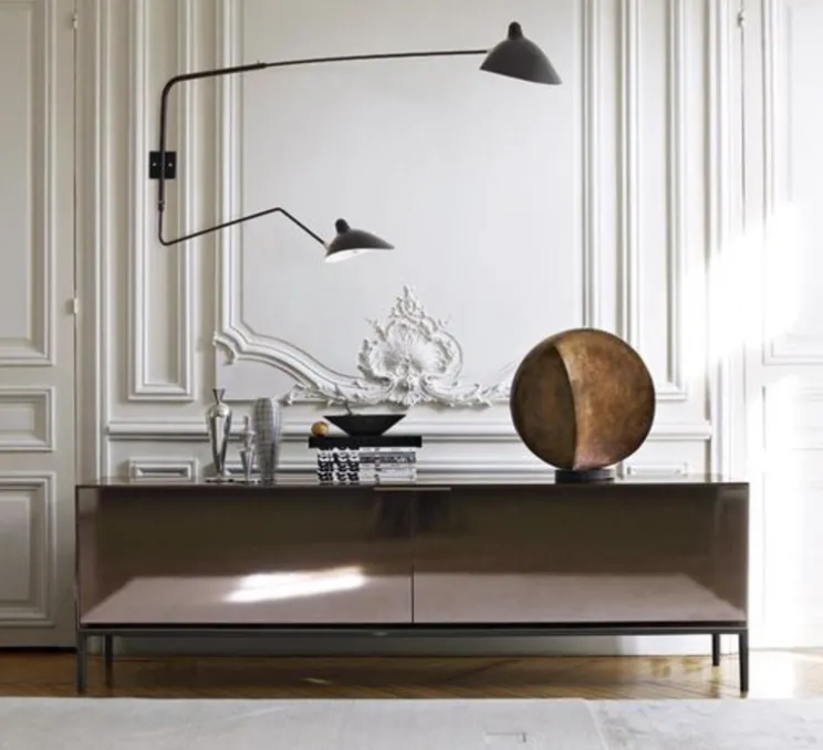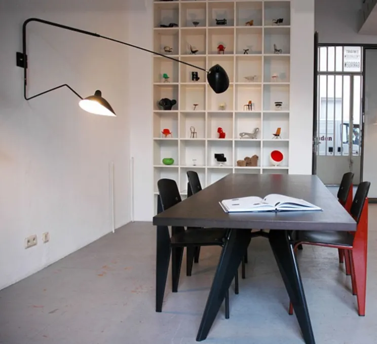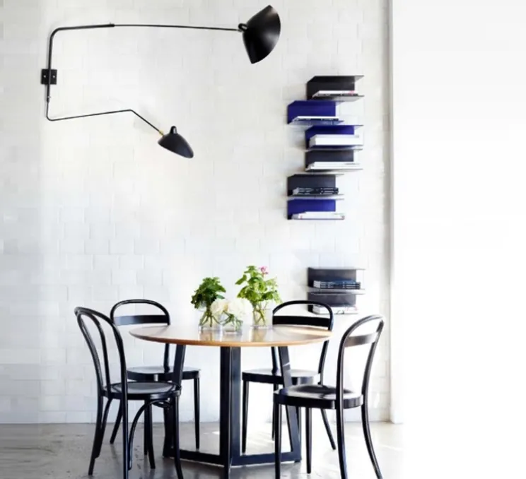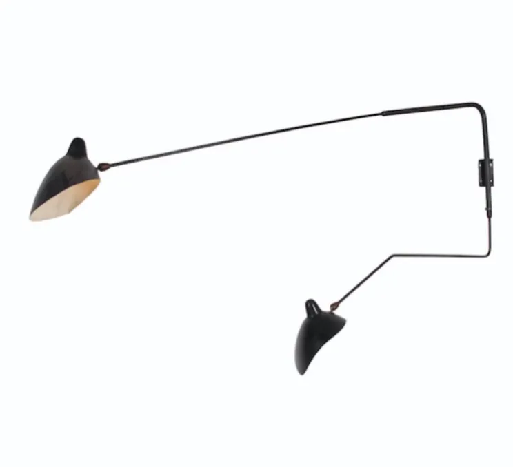 L’intemporelle applique murale 2 bras pivotants dont 1 courbe Mouille de coloris noir a été dessinée en 1954 par un des plus grands designers de luminaires du 20ème, Serge Mouille: une véritable icône du design qui habille le salon, la chambre ou une autre pièce de la maison, avec ses deux bras: l’un d’1m75 et l’autre d’1m13…Un classique du design qui ne passe pas inaperçu.