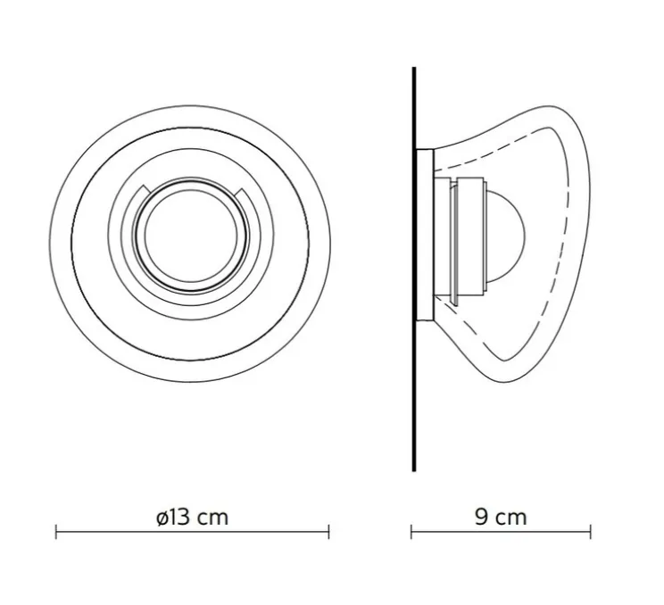 L’applique Agua mesure 13 cm de diamètre et 9 cm de profondeur. Sa source lumineuse est incluse.