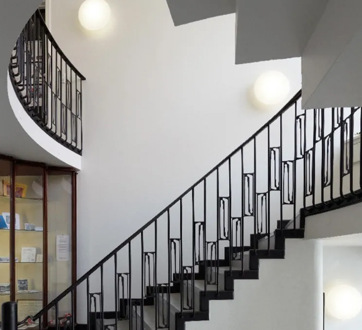 Le verre est conçu pour éclairer de manière uniforme. Le bord transparent de l’abat-jour soufflé en trois couches de verre opalisé forme une auréole de lumière autour du luminaire.
