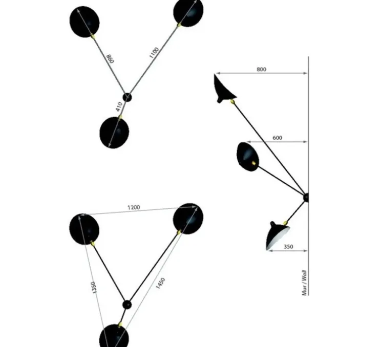 Son corps est en acier, les rotules en laiton sont pivotantes à 270° et les réflecteurs en aluminium sont orientables à 55°. L’intérieur des réflecteurs est blanc brillant pour une lumière diffuse et agréable.