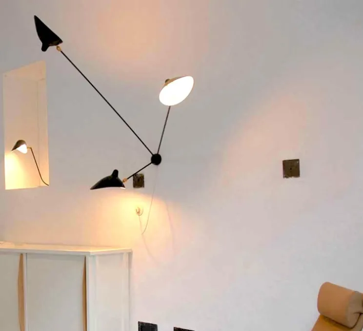 L’intemporelle applique murale 3 bras fixes Mouille de coloris noir a été dessinée en 1955 par un des plus grands designers de luminaires du 20ème, Serge Mouille : une véritable icône de design qui habille le salon, la chambre et le couloir avec ses trois bras d’1m30, d’1m05, 55cm…Un grand classique de la décoration contemporaine qui ne passe pas inaperçu.