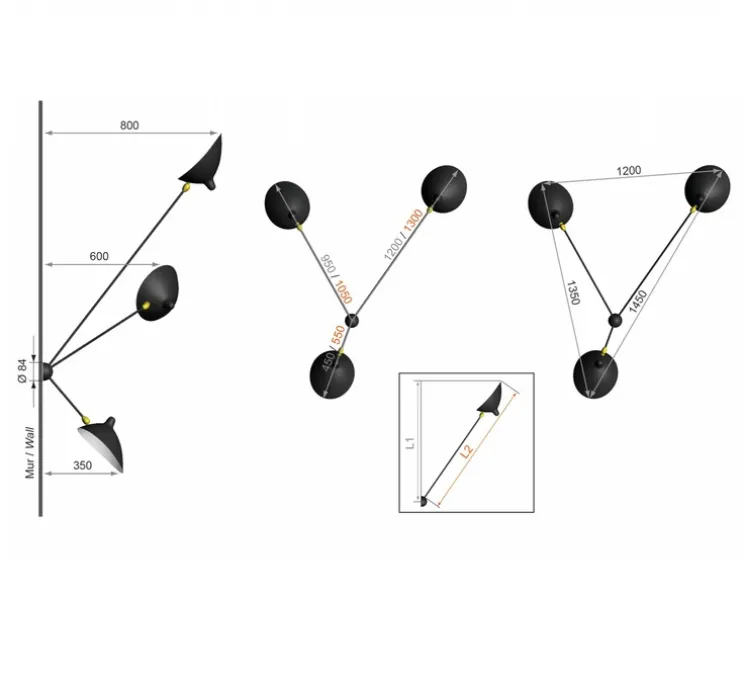 Son corps est en acier, les rotules en laiton sont pivotantes à 270° et les réflecteurs en aluminium sont orientables à 55°. L’intérieur des réflecteurs est blanc brillant pour une lumière diffuse et agréable.