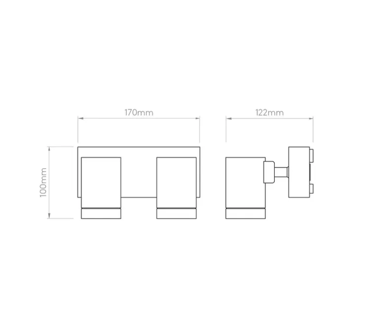 Le double spot mesure 10 cm de hauteur et 17 cm de longueur. Sa profondeur est de 12,2 cm.