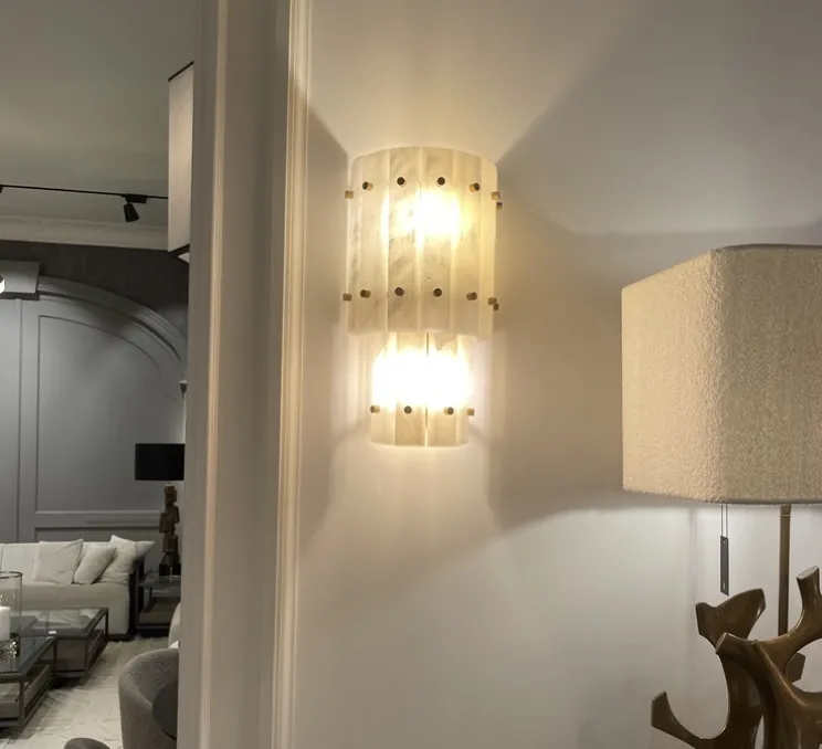 L’albâtre, en tant que matériau naturel, confère à chaque pièce ses propres particularités de couleur, d’opacité et de veinage. Ces variations subtiles offrent à chaque applique une singularité visuelle, créant ainsi un jeu de nuances et de motifs uniques, faisant de chaque pièce une œuvre authentique et distincte.