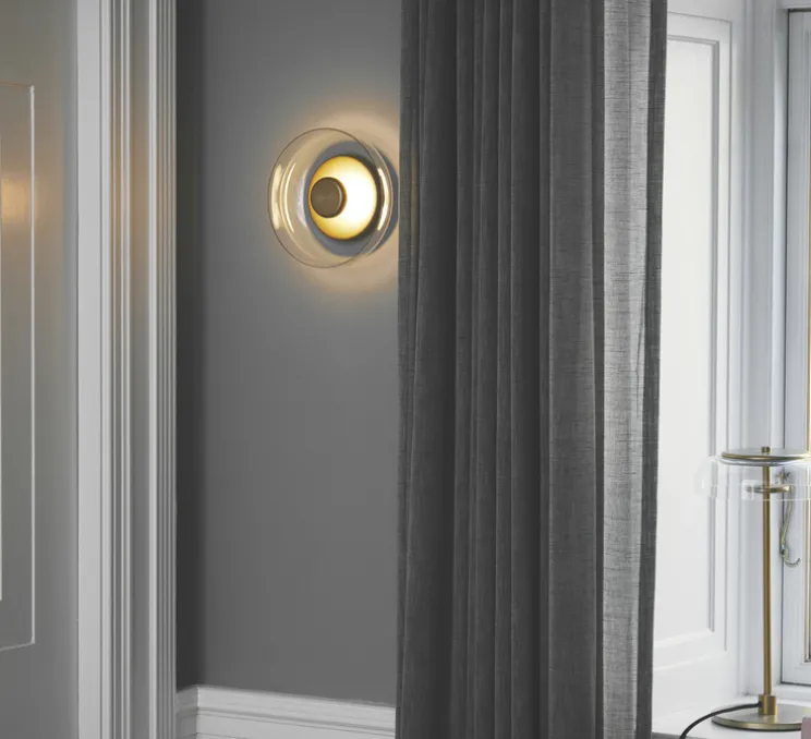 Cette applique innovante est réalisée avec la toute dernière technologie LED. Grâce à un disque LED spécialement développé, la lumière se reflète dans l’abat-jour en verre soufflé à la bouche et dans le métal doré, offrant ainsi un éclairage indirect doux et sophistiqué.