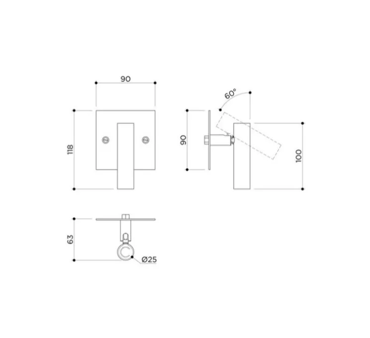 Le tube cylindrique orientable mesure 10 cm de haut et 2,5 cm de diamètre. La hauteur totale du luminaire est 11,8 cm.