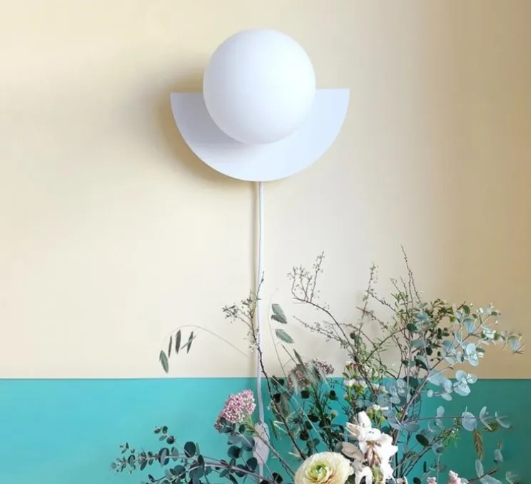 Au-delà des formes graphiques, l’applique C.Lamp possède un globe opalin de 22cm de diamètre.