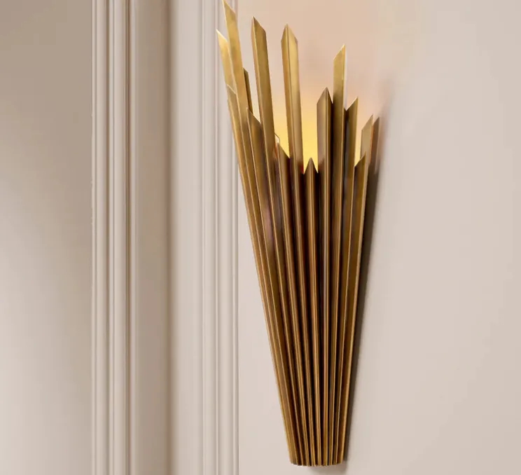 Avec sa structure en métal finition laiton vintage, Celestia adopte une silhouette conique élancée qui attire naturellement le regard. Son design, inspiré des formes rayonnantes, en fait une pièce idéale pour souligner la hauteur d’un mur ou structurer un espace de passage comme un grand couloir ou une entrée. Son éclairage indirect crée une lumière douce et diffuse qui habille l’espace sans l’alourdir.