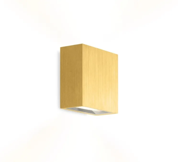 De forme cubique, cette applique symétrique diffuse un flux lumineux vers le haut et le bas pour un éclairage optimal. Son diffuseur en triangle permet d’élargir le faisceau de lumière. Avec sa peinture dorée brossée, ce luminaire s’intègre facilement à vos espaces.