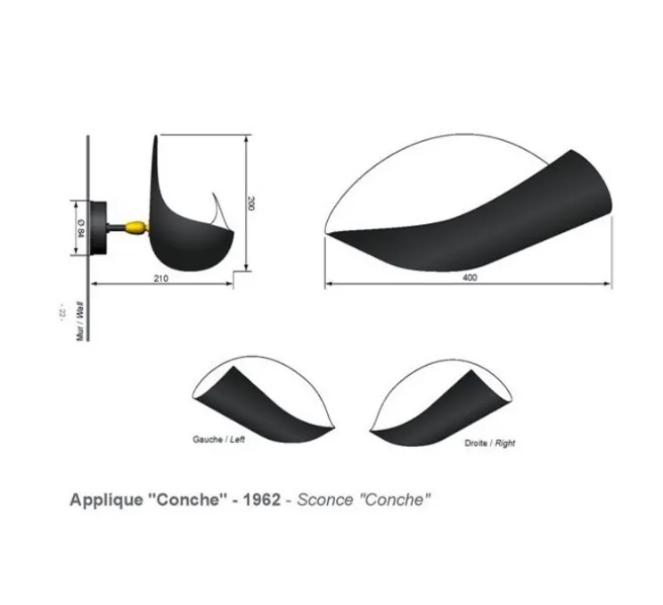 L’intemporelle applique murale Conche Mouille de coloris noir a été dessinée en 1962 par un des plus grands designers de luminaires du 20ème, Serge Mouille : une véritable icône de design qui habille vos murs de votre salon, chambre, couloir, bureau avec élégance…Un grand classique de la décoration contemporaine qui ne passe pas inaperçu.