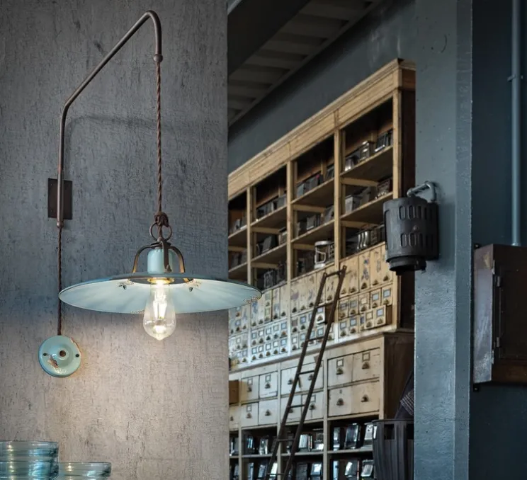 Représentatif de la collection Rétro de Ferroluce, ce luminaire reprend les codes industriel et coloré de la gamme.
