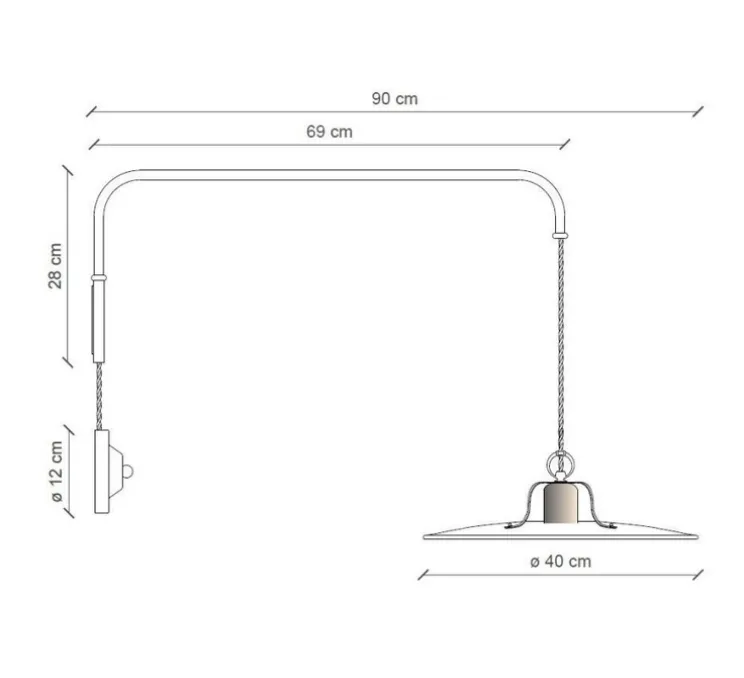 L’applique murale a un abat-jour de 40cm de diamètre pour 40cm de hauteur.