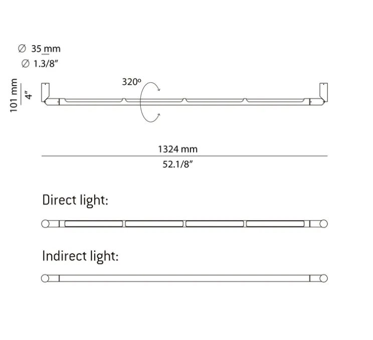 L’applique offre une source LED dimmable de 2700K, avec une luminosité de 1092 lm et un angle d’ouverture de 120°. Sa longueur de 132,4 cm et sa conception en saillie assurent une installation flexible, tandis que son indice de rendu des couleurs (IRC) supérieur à 90 garantit une qualité d’éclairage exceptionnelle.