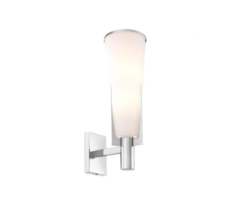 D’une qualité de fabrication exceptionnelle, la lampe murale Dino répond à la fois aux goûts classiques et modernes. Sa finition nickel brillant est associée à un design géométrique audacieux qui évoque l’esthétique rétro des années 1950 et 1960. Un abat-jour architectural conique en verre blanc avec un bord en nickel complète son look moderne du milieu du siècle.