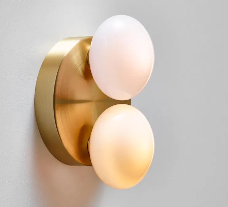 Cette applique se compose de deux sphères aplaties en verre opaque blanc, fixées sur un support circulaire en laiton. Son design rétro et épuré s’harmonise avec une multitude de styles d’intérieur, apportant une lumière chaleureuse et une touche d’élégance. Idéale pour illuminer un couloir, une entrée ou un espace de lecture, elle s’impose comme un élément décoratif subtil et fonctionnel.