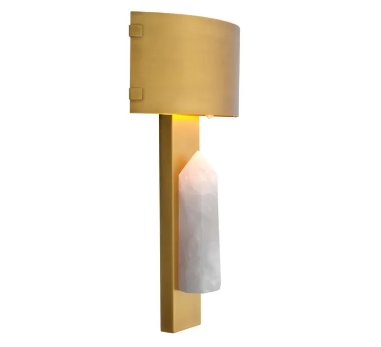 L’applique Evora se distingue par sa finition en laiton antique, qui met en valeur la beauté du cristal de roche. Son design cubique et sa forme épurée s’intègrent parfaitement à des décors Art Déco ou contemporains. Placez-la dans un salon, une entrée ou une chambre pour ajouter une touche de luxe et de lumière douce. Le cristal de roche diffuse une lueur captivante qui enrichit l’ambiance tout en mettant en valeur les textures environnantes.