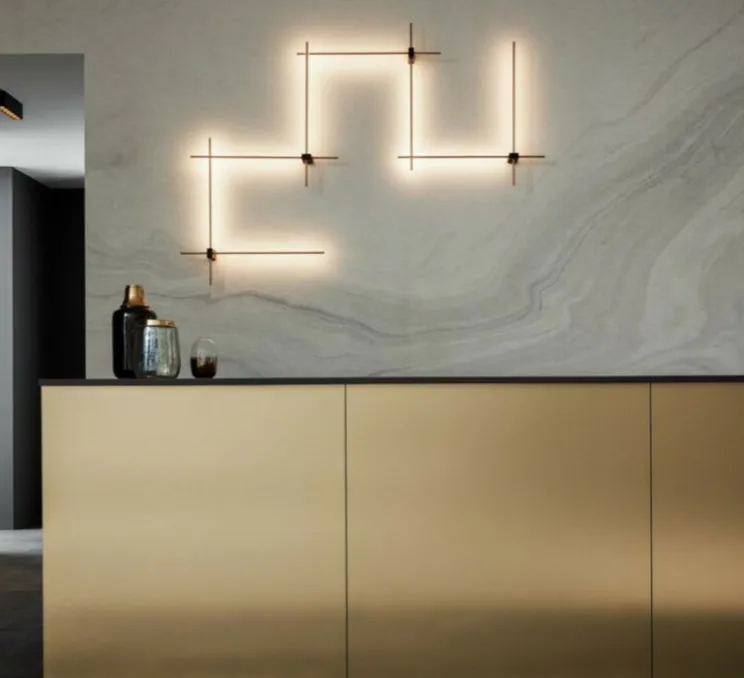 Finlin 4.0 est une applique murale tout en finesse : 2 long bras or se croisent au niveau d’une base noire. De ces longs bras sortent une lumière indirecte. Finlin 4.0 est parfait pour apporter une atmosphère cosy à un couloir ou un salon. Autre option : créer une composition très graphique avec Finlin 4.0 et les autres membres de la famille Finlin, idéale comme élément décoratif au-dessus d’un buffet.