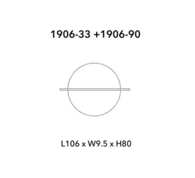 L’applique ronde large mesure 106cm de longueur, 80cm de hauteur et 9,5cm de profondeur. Le module Led intégré a une puissance de 60W et diffuse 1561 lumens avec une colorimétrie de 2700K (blanc chaud). Variable 0-10V. Transformateur inclus.