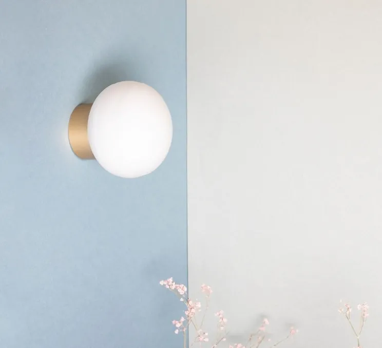 Découvrez l’applique murale Qamar, finition champagne et verre opalin de la maison française Nexel.