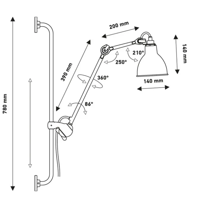 Cette applique N°210 L se compose d’un très BRAS articulé à 360° et d’un réflecteur orientable, qui permettent de diriger la lumière avec précision. Vous pouvez placer le luminaire à la hauteur de votre choix.
