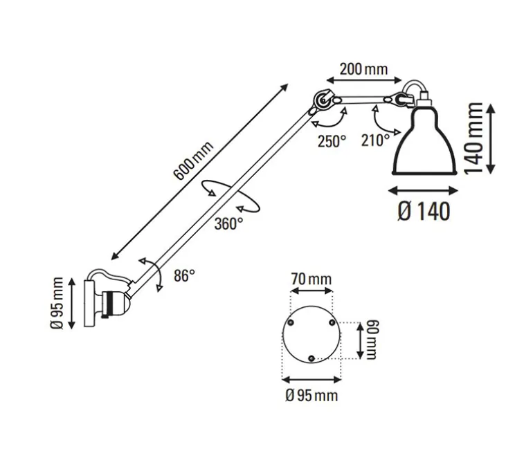 Le luminaire Lampe Gras se compose d’une petite base de fixation, d’un long bras articulé et d’un abat-jour rond. Industrielle et versatile, l’applique murale Lampe Gras 304 L60 peut également s’installer en plafonnier et trouve sa place dans une pièce de vie, une entrée ou un bureau.
