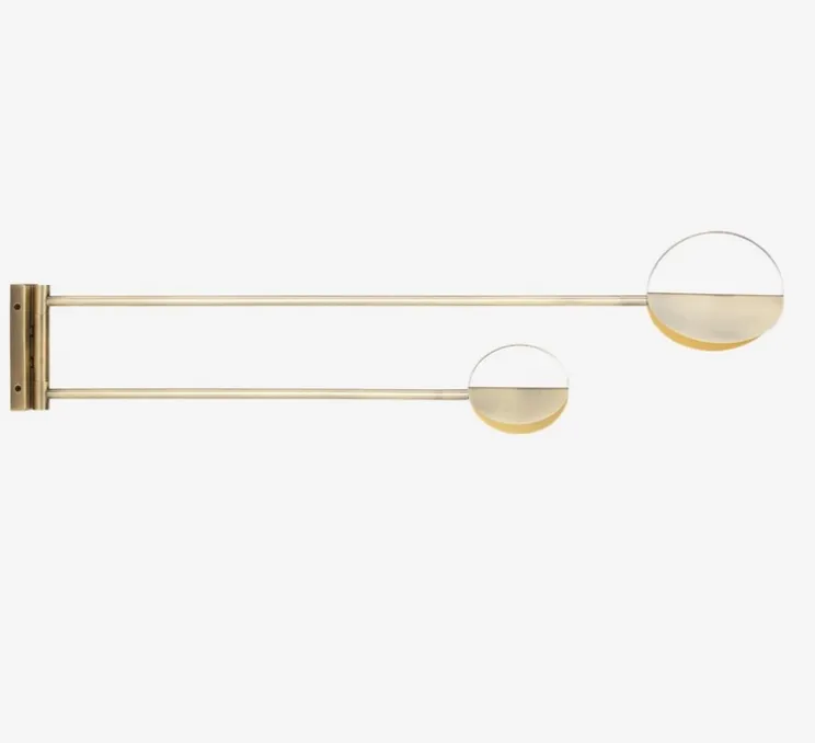 Très épurée cette applique à la finition laiton est composée de 2 sources lumineuses orientables grâce aux rotules. Dirigez la lumière vers le haut, vers le bas ou sur les côtés.