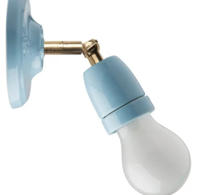 Mélange de matières nobles, la porcelaine de limoge en finition bleue turquoise et le laiton qui magnifie l’ampoule E27.
