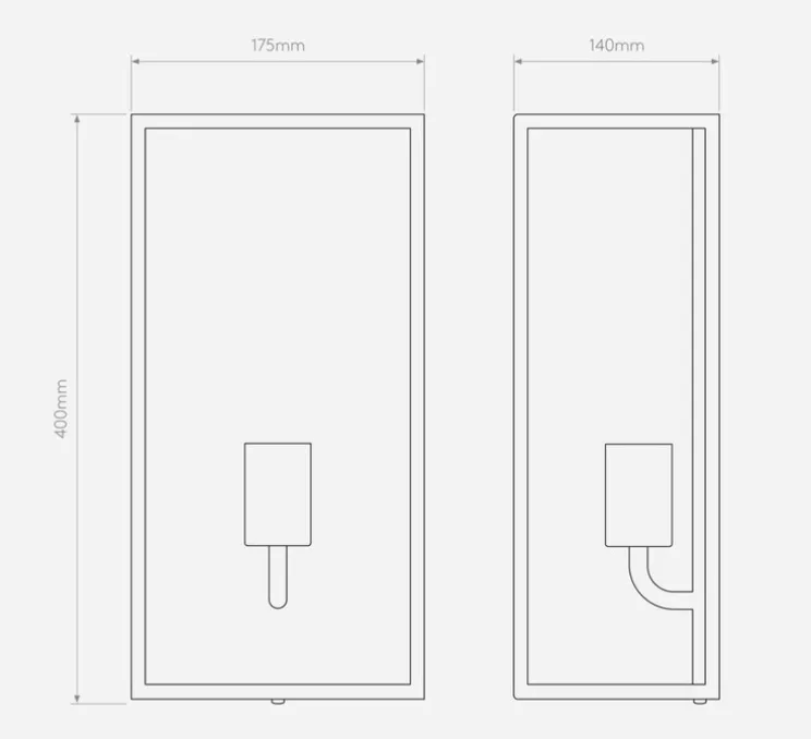 - L 17.5cm x H 40.0cm x P 14.0cm