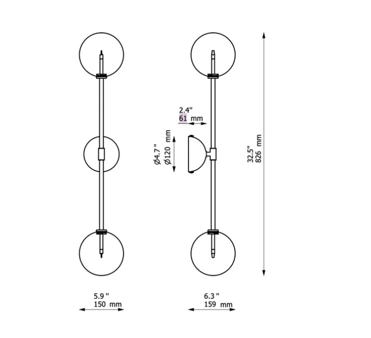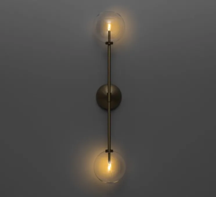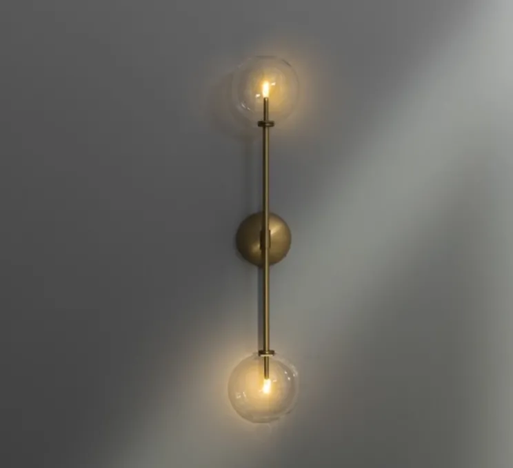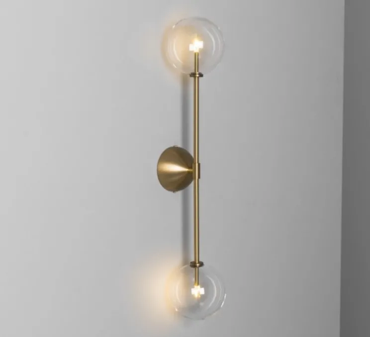 Conçue en laiton avec des globes en verre soufflé à la bouche, son style rétro introduit une touche poétique dans votre intérieur.