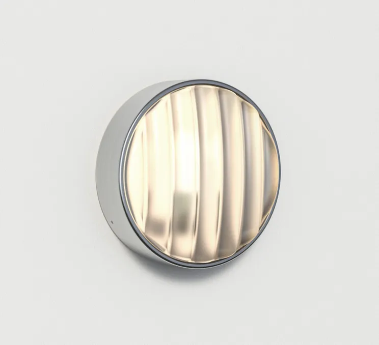 Découvrez l’applique murale d’extérieur Montréal Round 220, finition acier inoxydable brossé, imaginée par le studio de la maison britannique Astro.