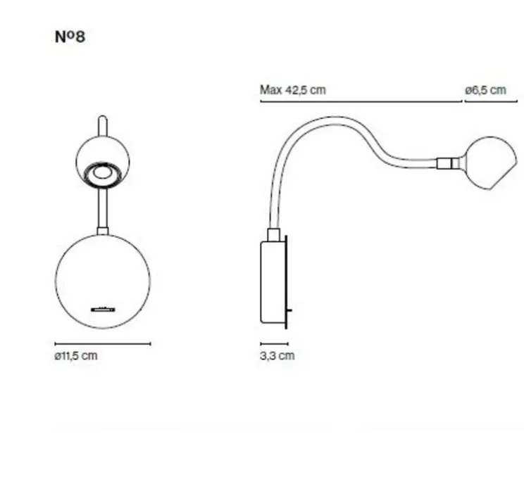 Pour cette collection, le designer a trouvé la solution idéale pour « libérer » les tables de chevet. Cette lampe orientable apporte une note originale et contemporaine à votre intérieur. Une lampe sensuelle qui séduit les sens de la vue et du toucher. La lampe de lecture Nº8 remplit tous les critères nécessaires pour un fonctionnement parfait : lumière efficace, manipulation facile, durabilité et beauté. Il a été conçu spécifiquement pour répondre à chacune de ces exigences, ce qui en fait un luminaire « rond » qui remplit parfaitement sa mission.