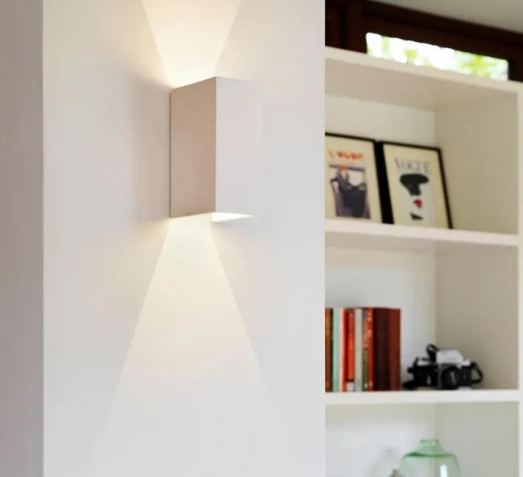 Avec son design minimaliste, cette applique trouve parfaitement sa place dans une chambre, un couloir ou toute pièce de votre intérieur mais également dans les commerces et la gastronomie, grâce à sa lumière indirecte qui invite à la relaxation. Cette applique se caractérise par sa forme cubique, avec son diffuseur blanc en plâtre blanc, qui produit un éclairage indirect et original dans la pièce, orienté vers le haut et vers le bas.