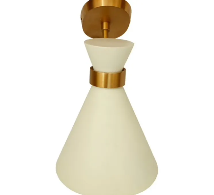 La petite applique Peggy blanche a une base en laiton avec une finition antique et un abat-jour mat qui s’harmonise avec la teinte dorée à l’intérieur. La cale réglable permet également de faire pivoter la lampe vers le haut et vers le bas en fonction de vos besoins, mais elle n’est pas destinée à être déplacée par la suite.