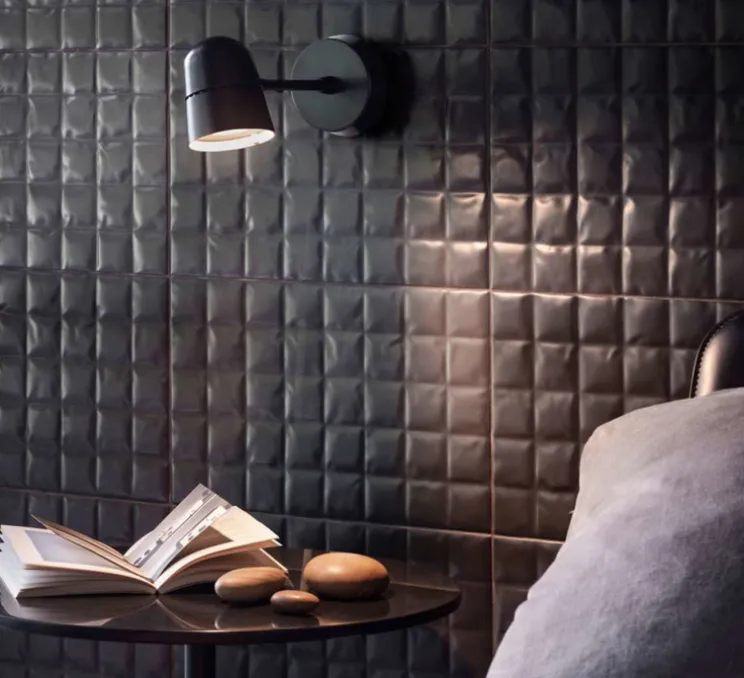 Ce spot au style industriel trouve sa place dans un bureau ou une chambre près d’un lit.