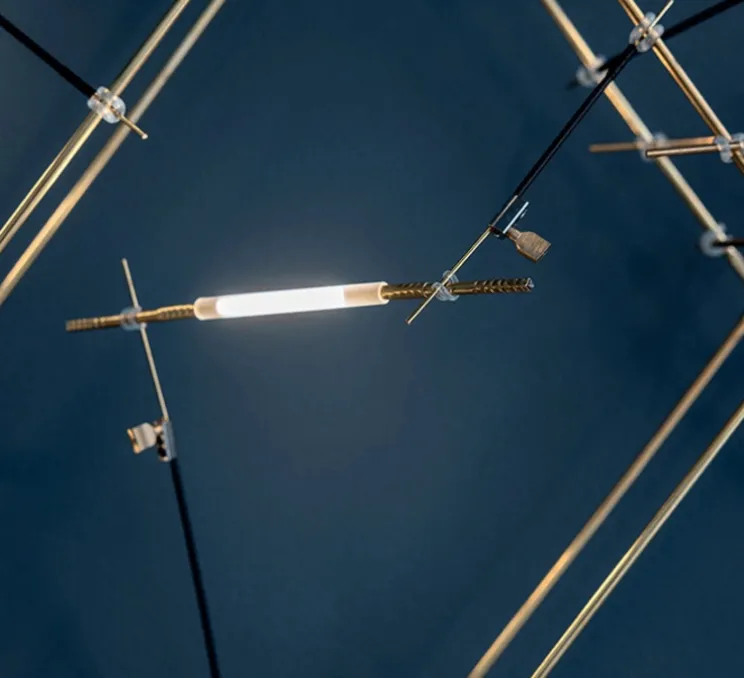 Conçue pour l’éclairage décoratif intérieur, elle reflète le savoir-faire artisanal de l’atelier et met en valeur la pureté du laiton travaillé à la main.