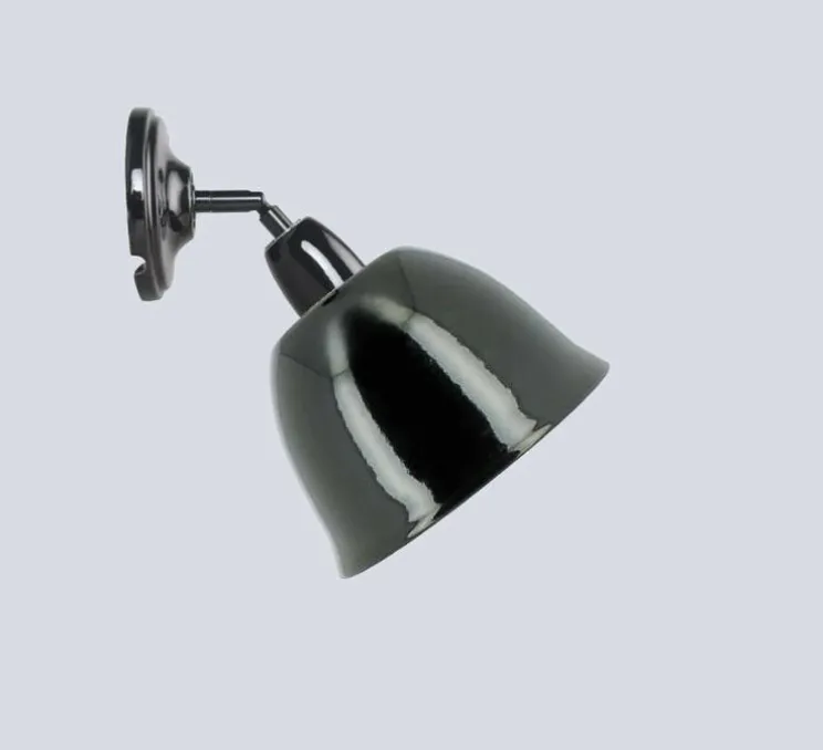 Cette simple applique est composée d’un abat-jour émaillé réalisé en quatre couches, de façon manuelle.