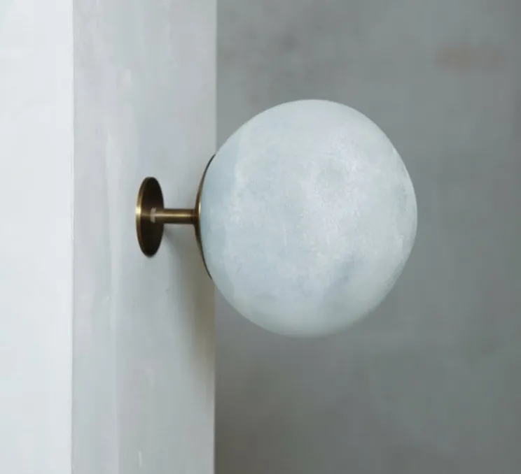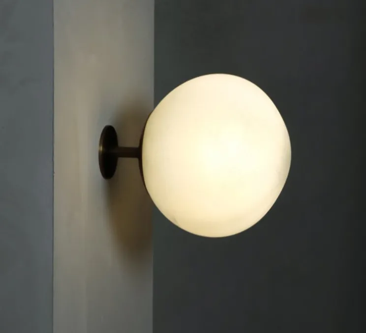 Visuellement, la Salty Wall 14 se distingue par sa forme sphérique parfaitement équilibrée et sa lumière douce et homomgène. Montée sur un support minimaliste en laiton, elle offre une présence discrète mais affirmée. L’éclairage tamisé qu’elle produit crée une ambiance chaleureuse, idéale pour souligner la texture des murs et mettre en valeur une architecture sobre. Elle s’intègre aussi bien dans un univers résidentiel naturel que dans un cadre professionnel épuré.