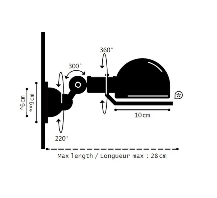 L’ampoule E14 n’est pas fournie avec cette applique Jieldé. Cette applique possède un interrupteur.