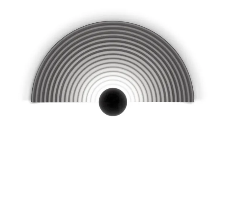 Wever&Ducré poursuit sa quête de rondeur en proposant un trio d’applique à l’inspiration japonisante. L’applique Tapis 2.0 se composé d’un demi disque en plâtre strié, surmonté d’un cercle noir de diamètre plus petit, derrière lequel se dissimule la source lumineuse.