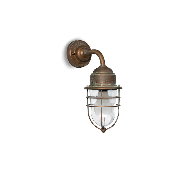 La finition de grande qualité en laiton vieilli cuivré, vert de gris est traitée pour résister à la salinité ou à la neige. Cette applique est donc idéale en bord de mer ou à la montagne. Son verre transparent vous permet d’obtenir une lumière agréable et diffuse.