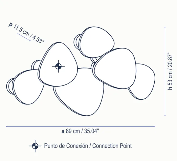 TRIA est une applique conçue comme un système modulaire réalisé avec des plaques de leds, ce qui permet de constituer facilement des grappes de lumières reliées entre elles par une structure interne.