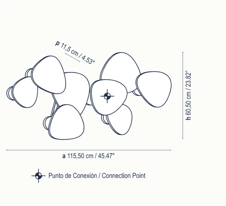 TRIA est une applique conçue comme un système modulaire réalisé avec des plaques de leds, ce qui permet de constituer facilement des grappes de lumières reliées entre elles par une structure interne.