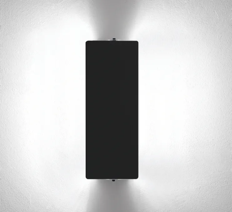 Le volet de ce modèle mesure 34cm de long sur 13cm de large. L’applique au mur est de 8cm de large. Différents coloris sont disponibles : aluminium, noir, inox.